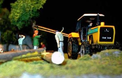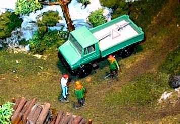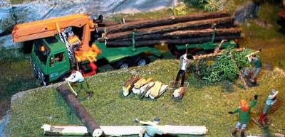 Neben dem Einsatz großer Fahrzeuge, auch immer wieder Handarbeit (warscheinlich Privatpersonen die Feuerholz schlagen)